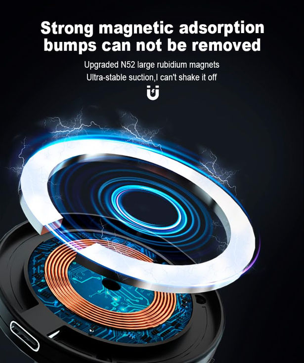 【Advanced Electric Magnetic Force Technology】 Featuring cutting-edge electric magnetic technology, this phone holder secures effortlessly to various surfaces, including car glass, dashboards, and desktops. With electric suction capabilities, this versatile holder adapts to multiple scenarios for a seamless experience.