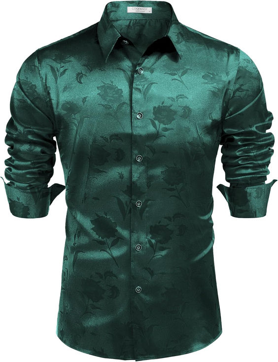 - MATERIAL- High Quality Silk-Like Satin Fabric.This dress shirt for men is shiny, wrinkle free, lightweight and breathable. Definitely catches the eye of others when you wear it.