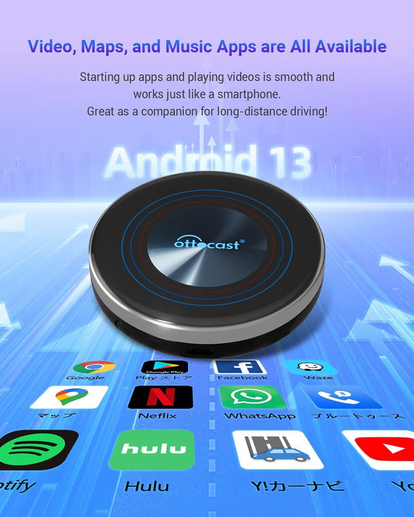 【 2024 Newest Ottocast OttoAibox I3 】 OttoAibox I3 is equipped with the new generation OS Android 13 system, and the new design of OttoDrive 2.0 has been further evolved. It provides a more personalized, secure and user-friendly system experience. You can freely customize the UI color scheme and widgets, and click and swipe more smoothly.